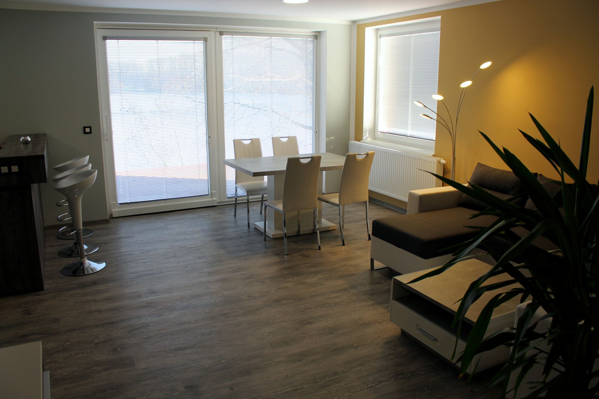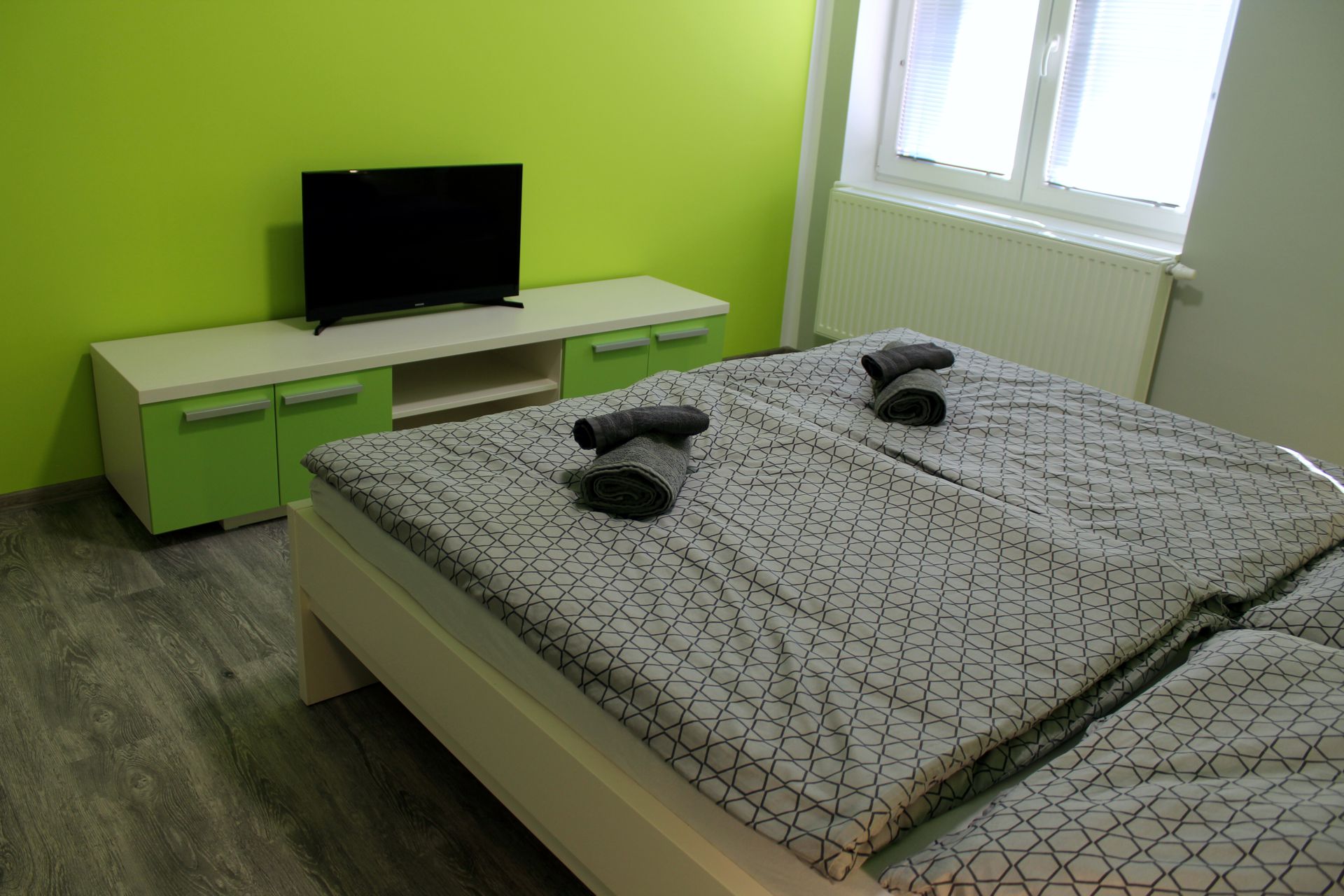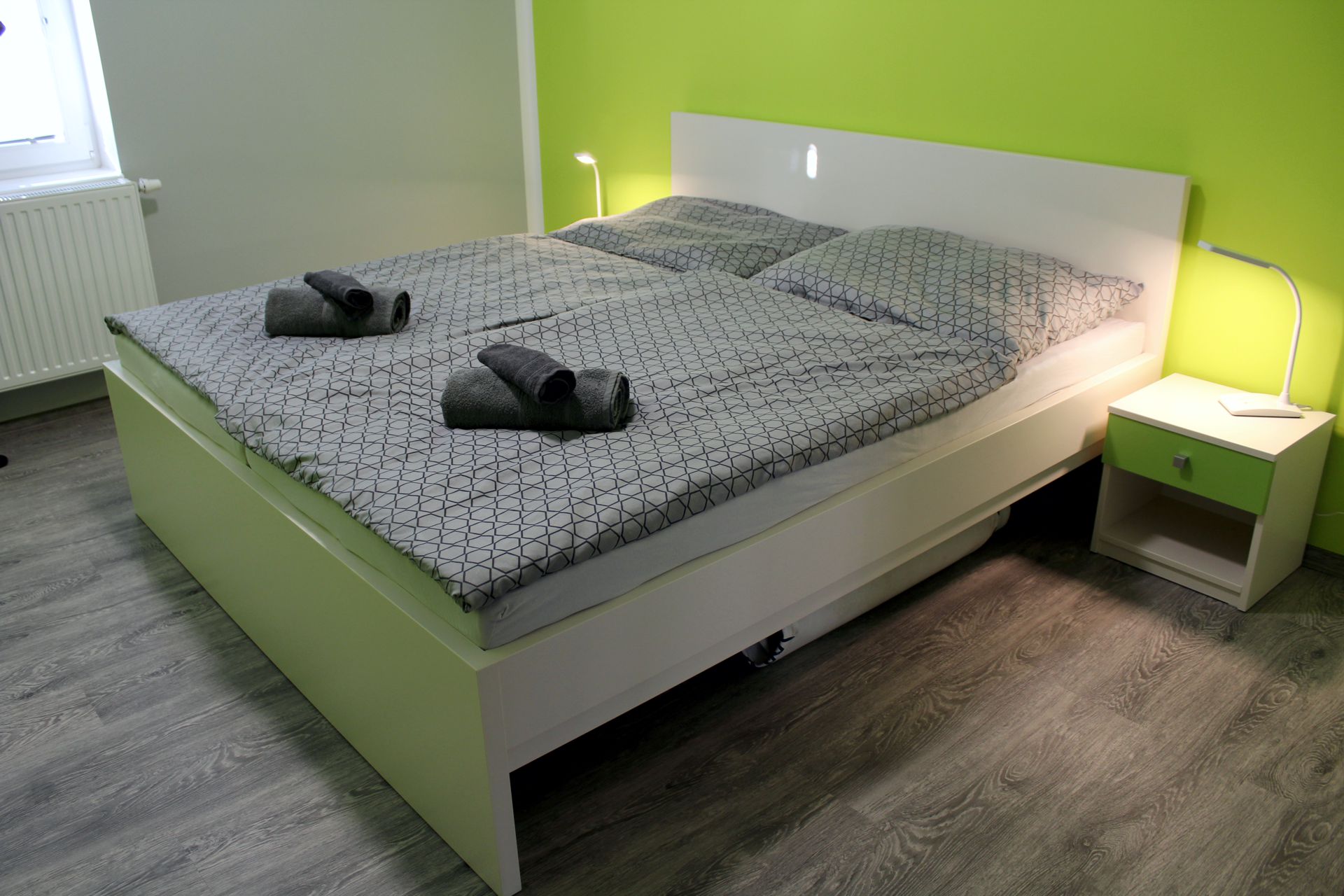 Apartmán BOA VISTAApartmán BOA VISTA je plně vybavený apartmán pro pět osob. Je to největší z našich apartmánů. Apartmán je plně vybaven pro krátkodobý i dlouhodobý pronájem. Výbava apartmánu obsahje základní nádobí pro stolování a vaření, sporák, troubu, rychlovarnou konvici, mikrovlnku, myčku, lednici a pračku. Součástí apartmánu jídelní kout pro čtyři osoby. Sociální zařízení obsahuje sprchový kout a wc. V apartmánu také naleznete TV a bezplatnou wifi. Z apartmánu je výhled na přírodní nádrž štěrkoviště. Spaní je realizováno ve dvou samostatných pokojích. Jeden pokoj obsahuje manželskou postel. Druhý obsahuje tři samostatné postele z nichž je jedna patrová. |