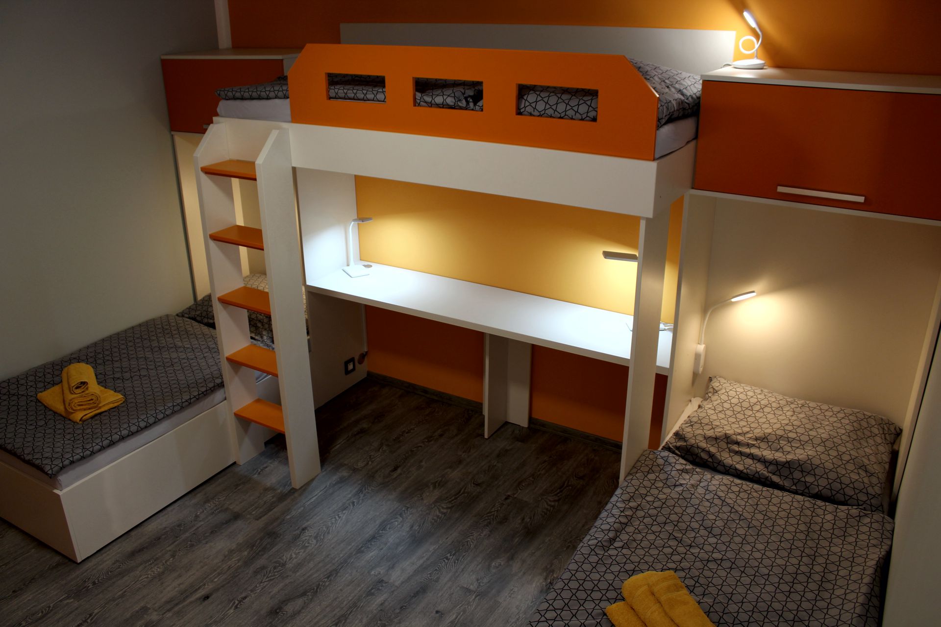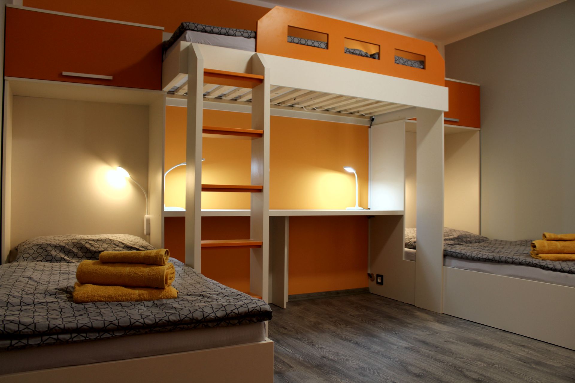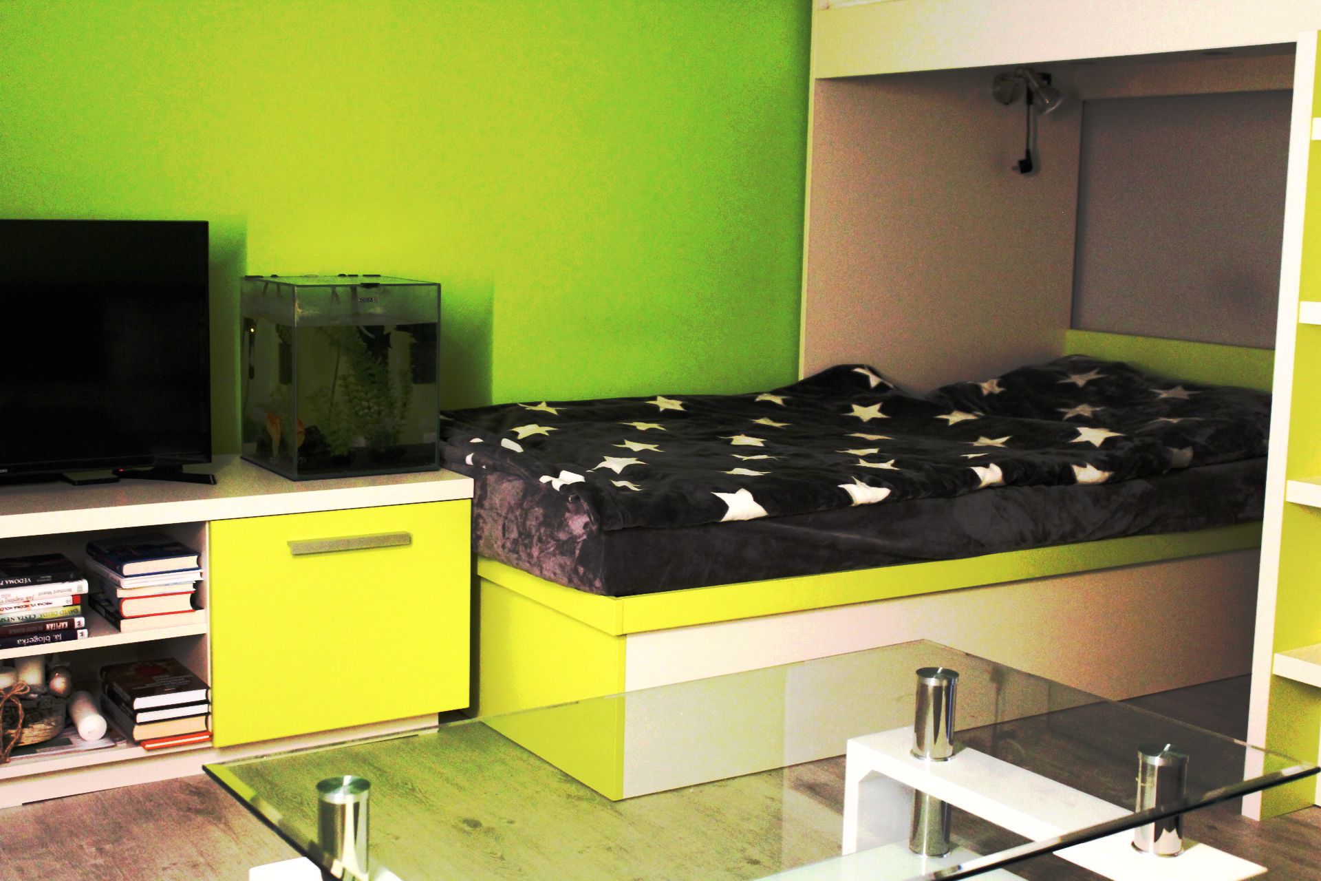 Apartmán BOA VISTAApartmán BOA VISTA je plně vybavený apartmán pro pět osob. Je to největší z našich apartmánů. Apartmán je plně vybaven pro krátkodobý i dlouhodobý pronájem. Výbava apartmánu obsahje základní nádobí pro stolování a vaření, sporák, troubu, rychlovarnou konvici, mikrovlnku, myčku, lednici a pračku. Součástí apartmánu jídelní kout pro čtyři osoby. Sociální zařízení obsahuje sprchový kout a wc. V apartmánu také naleznete TV a bezplatnou wifi. Z apartmánu je výhled na přírodní nádrž štěrkoviště. Spaní je realizováno ve dvou samostatných pokojích. Jeden pokoj obsahuje manželskou postel. Druhý obsahuje tři samostatné postele z nichž je jedna patrová. |