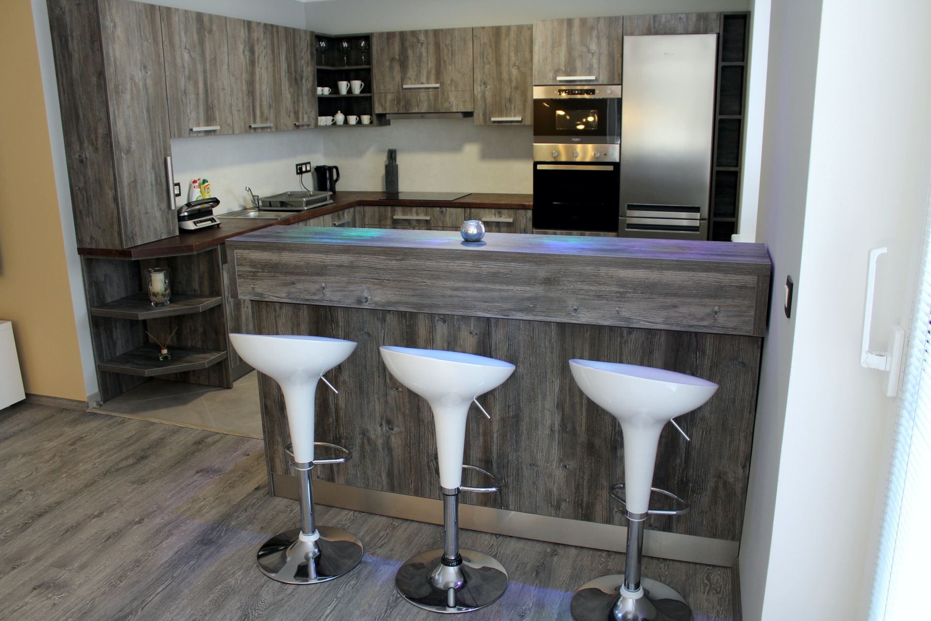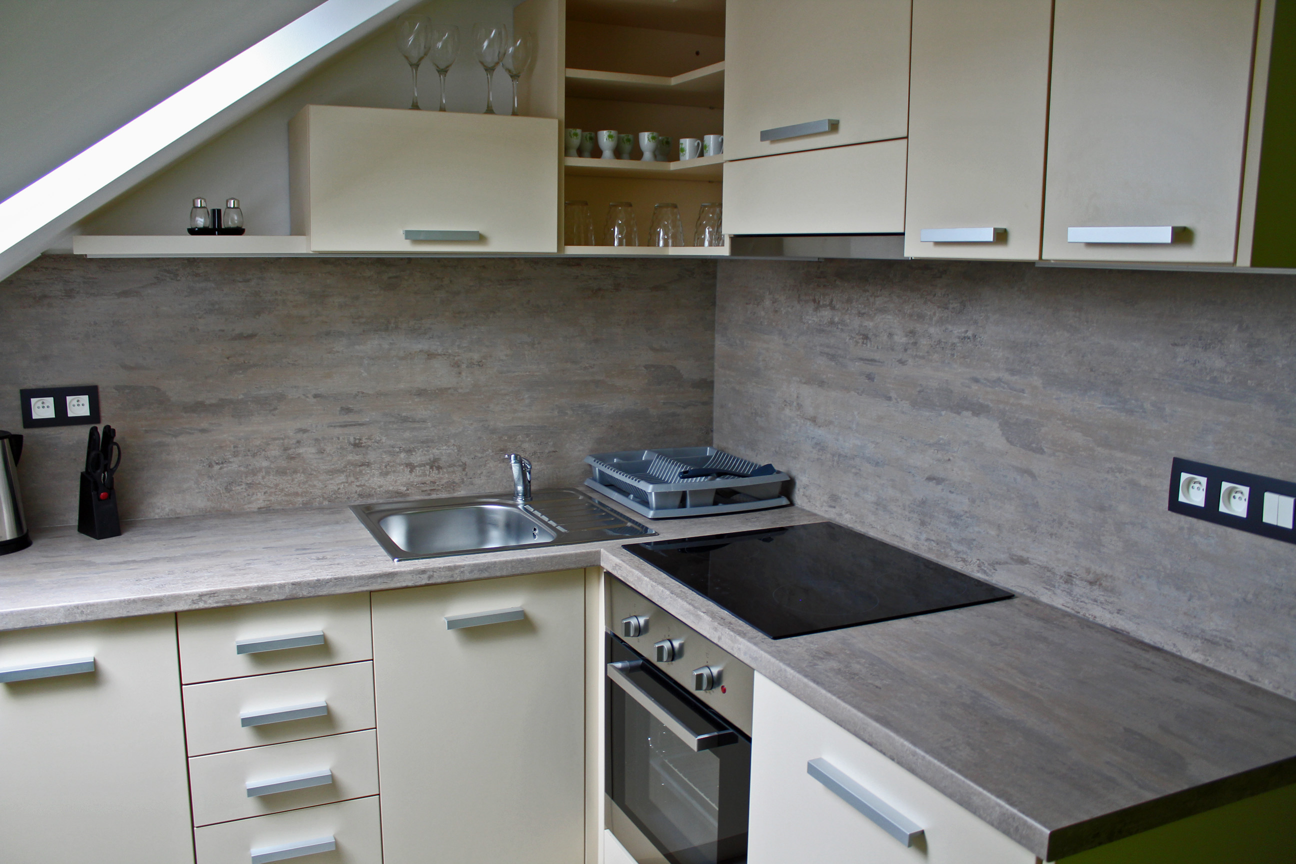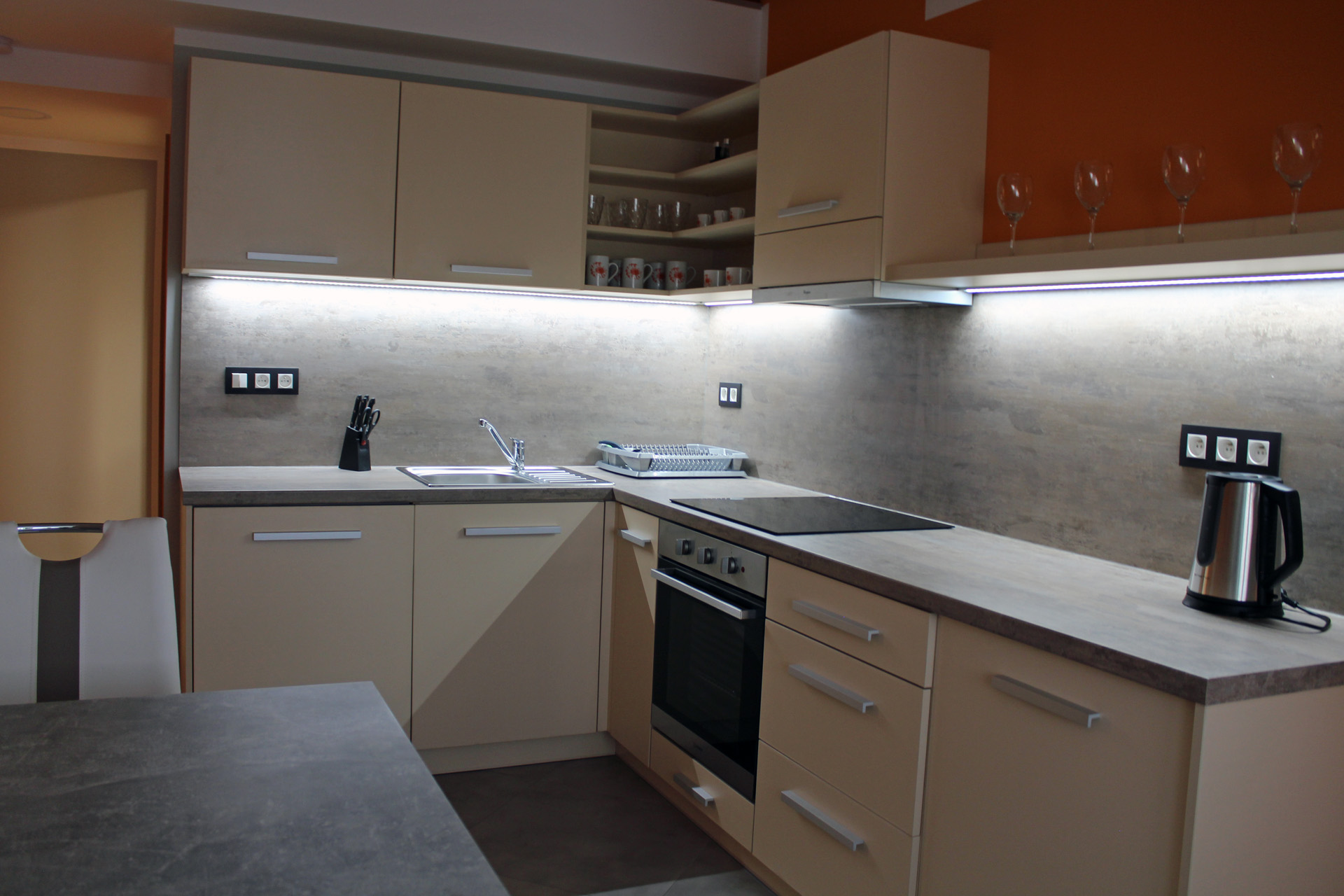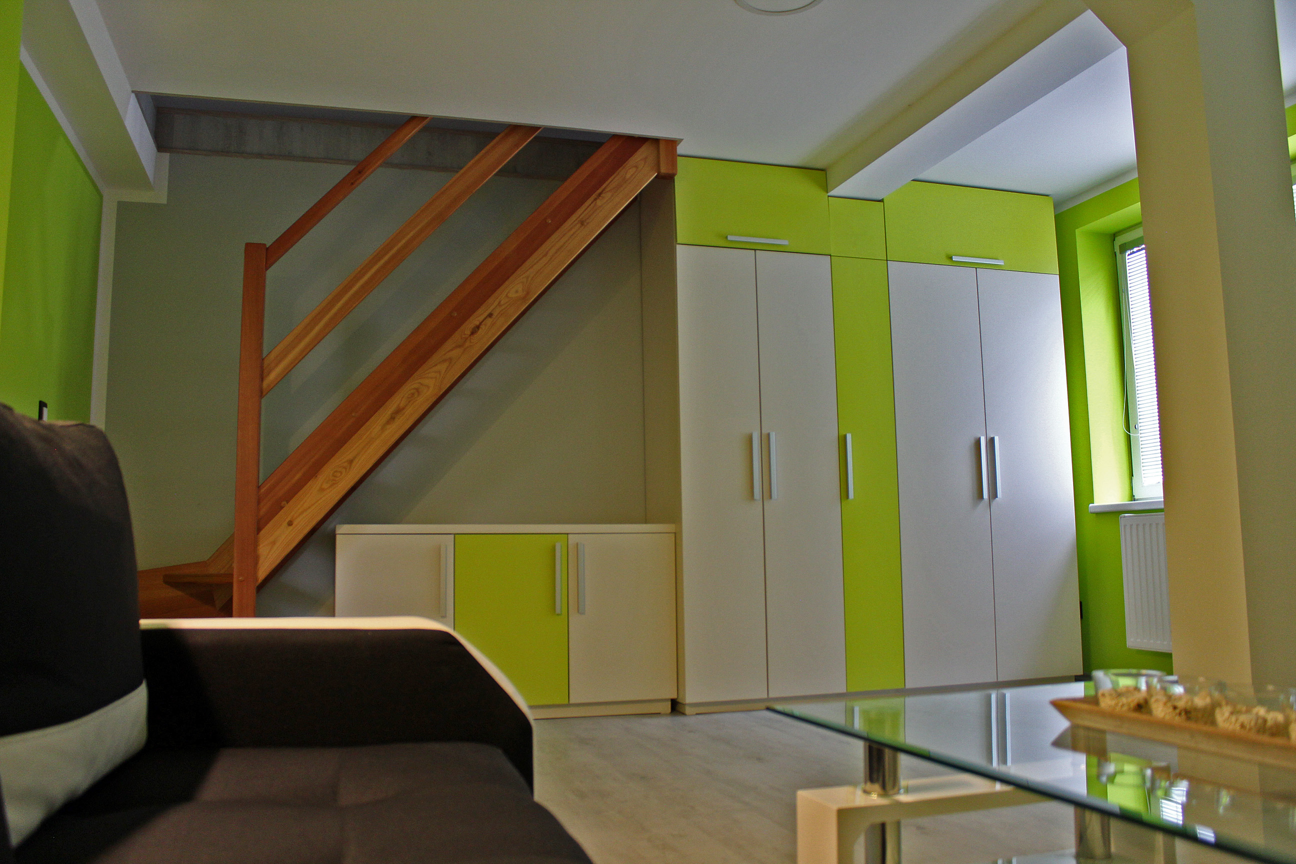 Apartmán MAIOApartmán MAIO je plně vybavený mezonetový apartmán pro čtyři osoby. Apartmán je plně vybaven pro krátkodobý i dlouhodobý pronájem. Výbava apartmánu obsahje základní nádobí pro stolování a vaření, sporák, troubu, rychlovarnou konvici, mikrovlnku, lednici a pračku. V kuchyni lze nalézt menší jídelní kout pro dvě osoby. Sociální zařízení obsahuje sprchový kout a wc. V apartmánu také naleznete TV a bezplatnou wifi. Spaní je realizováno v podkrovním patře na samostatných postelích, které lze dle potřeby spojit, či rozdělit. |