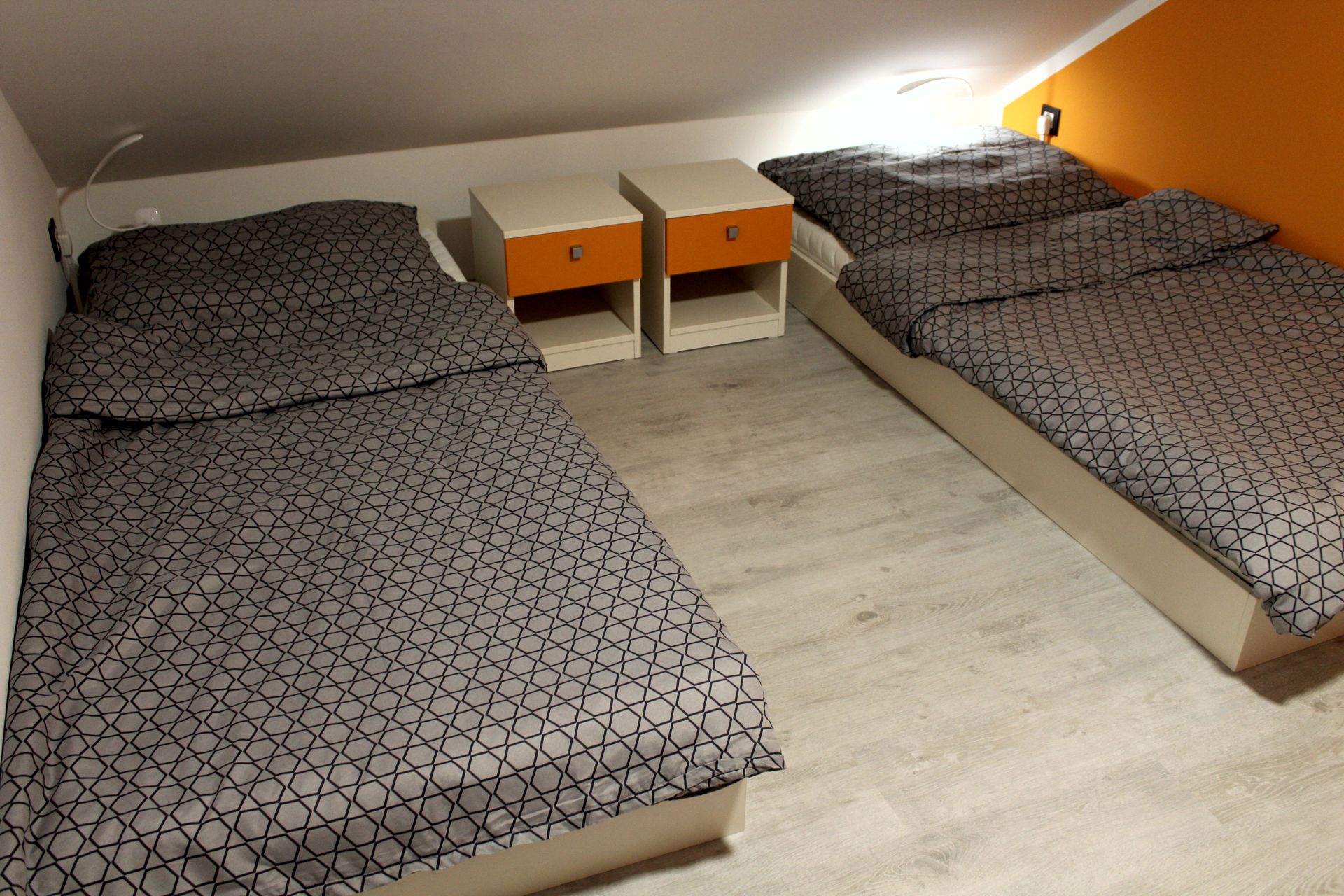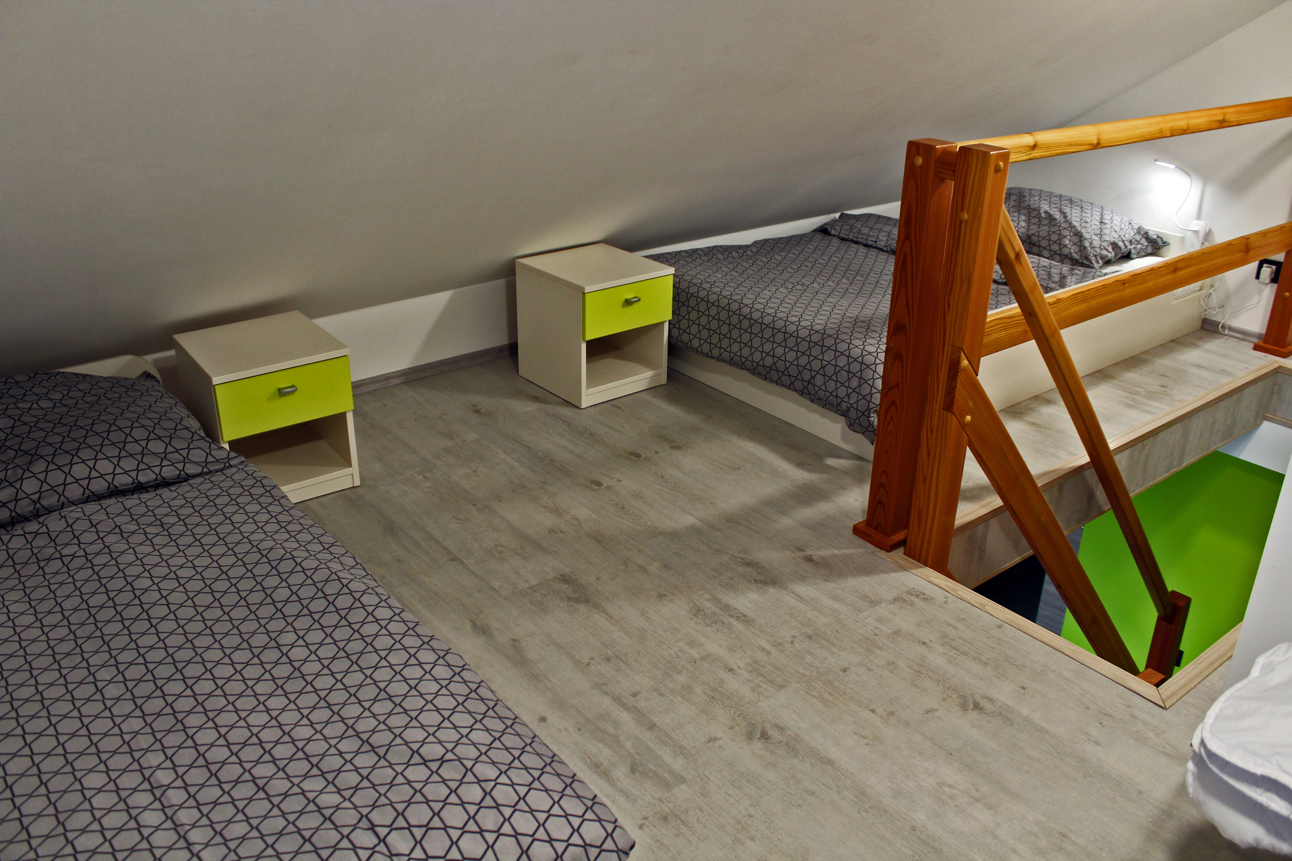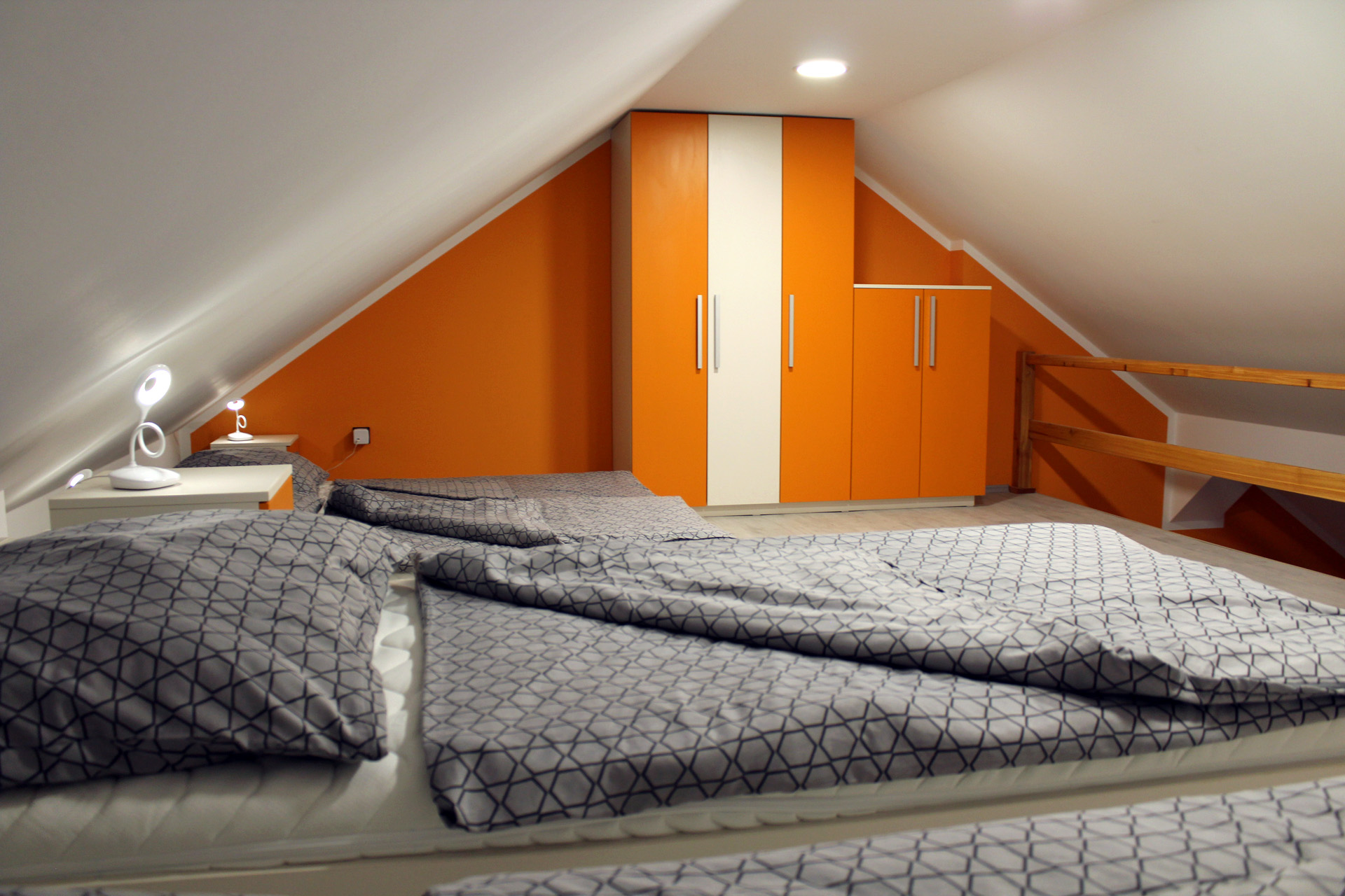 Apartmán SANTIAGOApartmán SANTIAGO je plně vybavený mezonetový apartmán pro čtyři osoby. Apartmán je plně vybaven pro krátkodobý i dlouhodobý pronájem. Výbava apartmánu obsahje základní nádobí pro stolování a vaření, sporák, troubu, rychlovarnou konvici, mikrovlnku, lednici a pračku. V kuchyni lze nalézt jídelní kout pro čtyři osoby. Sociální zařízení obsahuje sprchový kout a wc. V apartmánu také naleznete TV a bezplatnou wifi. Z apartmánu je výhled na přírodní nádrž štěrkoviště. Spaní je realizováno v podkrovním patře na samostatných postelích, které lze dle potřeby spojit, či rozdělit. |