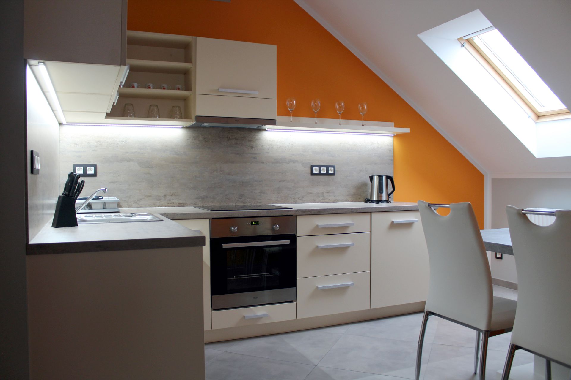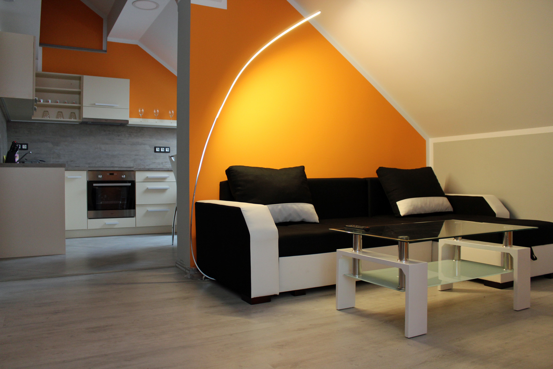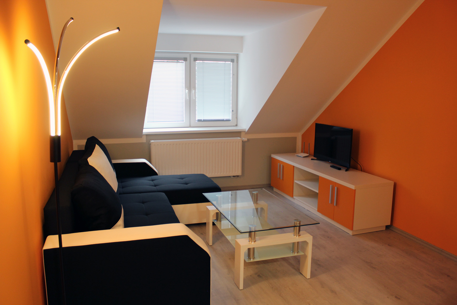 Apartmán SANTIAGOApartmán SANTIAGO je plně vybavený mezonetový apartmán pro čtyři osoby. Apartmán je plně vybaven pro krátkodobý i dlouhodobý pronájem. Výbava apartmánu obsahje základní nádobí pro stolování a vaření, sporák, troubu, rychlovarnou konvici, mikrovlnku, lednici a pračku. V kuchyni lze nalézt jídelní kout pro čtyři osoby. Sociální zařízení obsahuje sprchový kout a wc. V apartmánu také naleznete TV a bezplatnou wifi. Z apartmánu je výhled na přírodní nádrž štěrkoviště. Spaní je realizováno v podkrovním patře na samostatných postelích, které lze dle potřeby spojit, či rozdělit. |